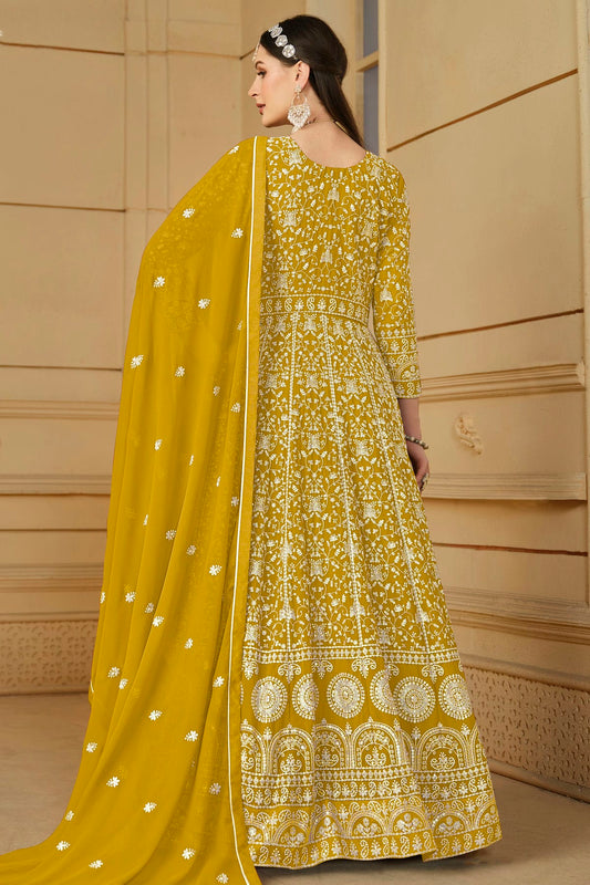Mustard Colour Semi Stitched Faux Georgette Anarkali Suit VSSM1050461