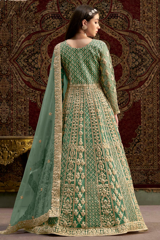 Sea Green Colour Net Semi Stitched Anarkali Suit VSSM1050658