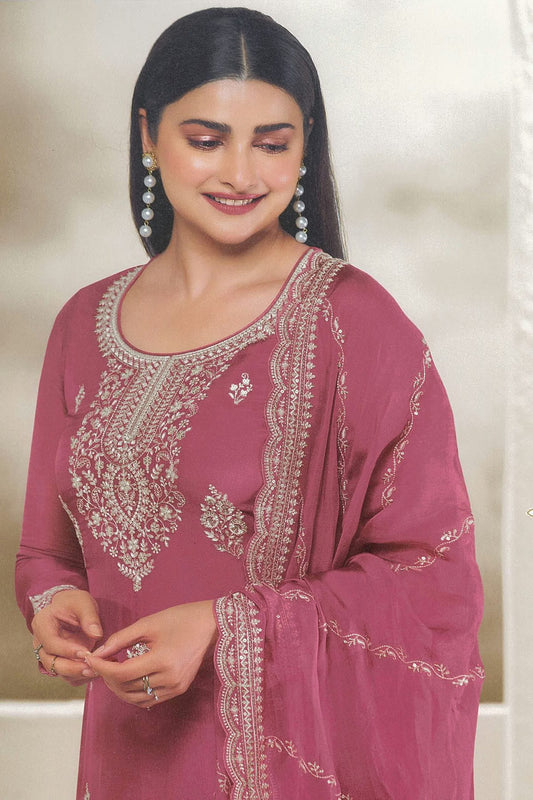 Pink Colour Organza Straight Suit VSSM1110709