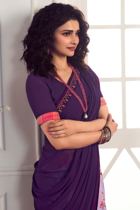 Purple Colour Georgette Printed Saree VSSD1180061