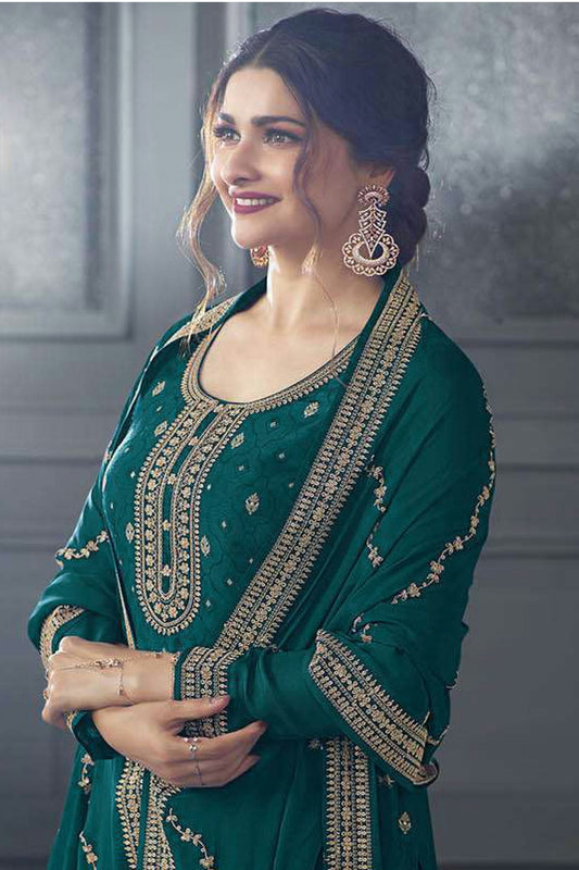 Rama Green Colour Semi Stitched Dola Jacquard Silk Palazzo Pant Suit VSSM1140202