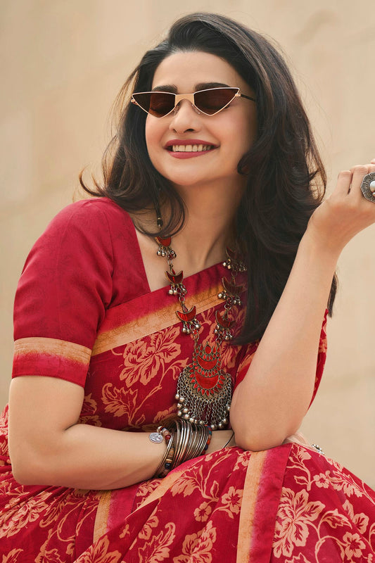 Red Colour Georgette Printed Saree VSSD1180072