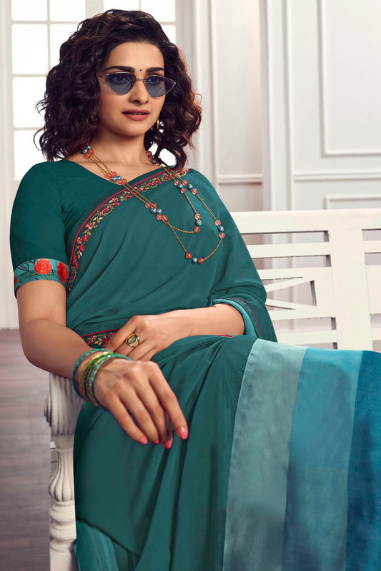 Teal Colour Georgette Printed Saree VSSD1180058