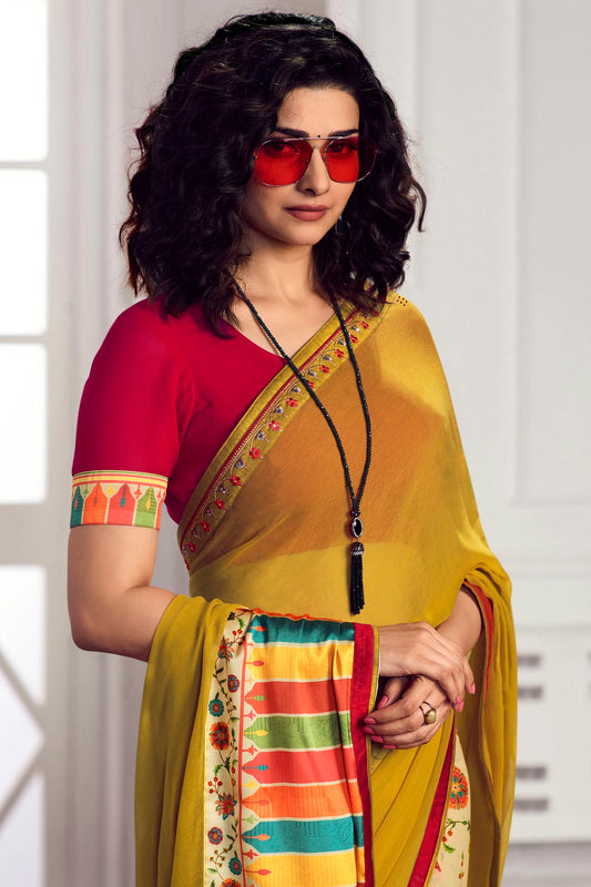 Yellow Colour Georgette Printed Saree VSSD1180064