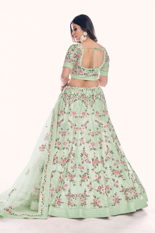Pista Green Colour Embroidery Soft Net Lehenga Choli VSLD1080760