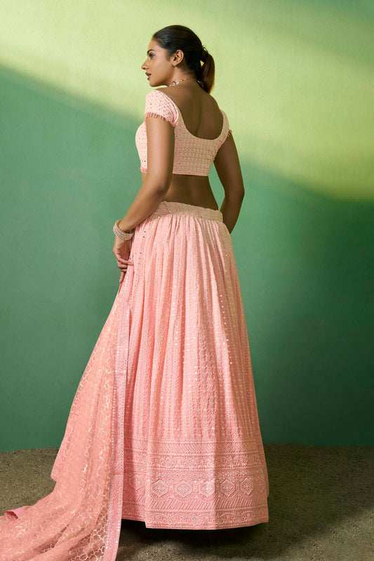 Light Pink Colour Embroidery Georgette Lehenga Choli VSLD1080784