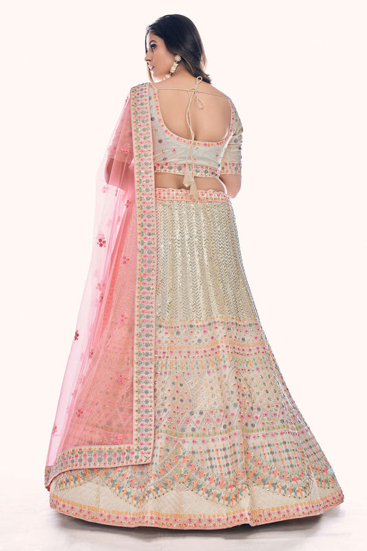 Off White Colour Embroidery Soft Net Lehenga Choli VSLD1080768