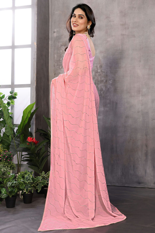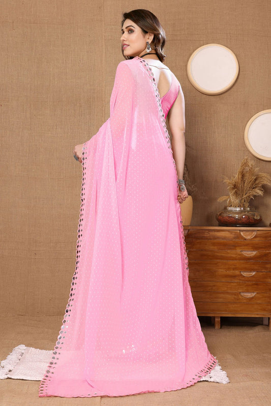 Baby Pink Colour Georgette Mirror Work Saree VSSD1180091