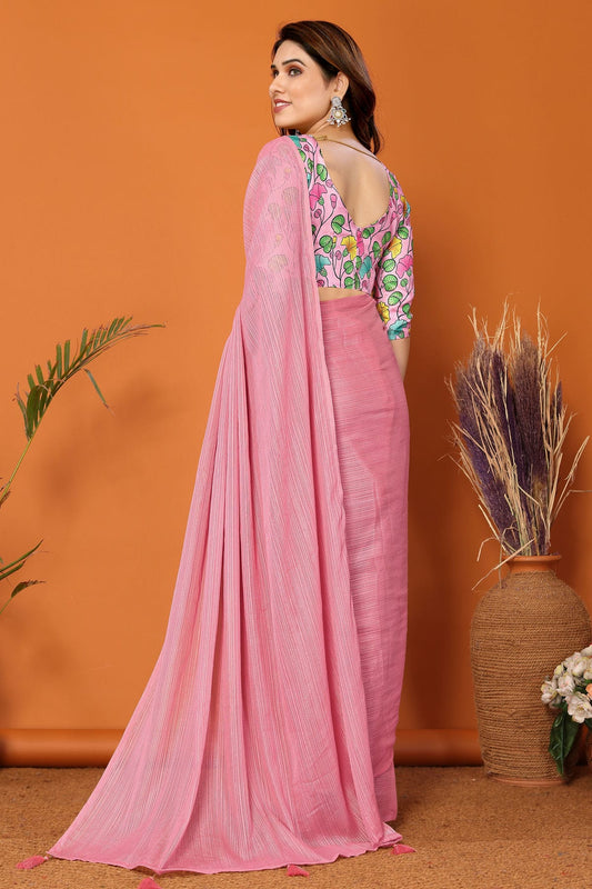 Baby Pink Colour Polyester Saree VSSD1180183