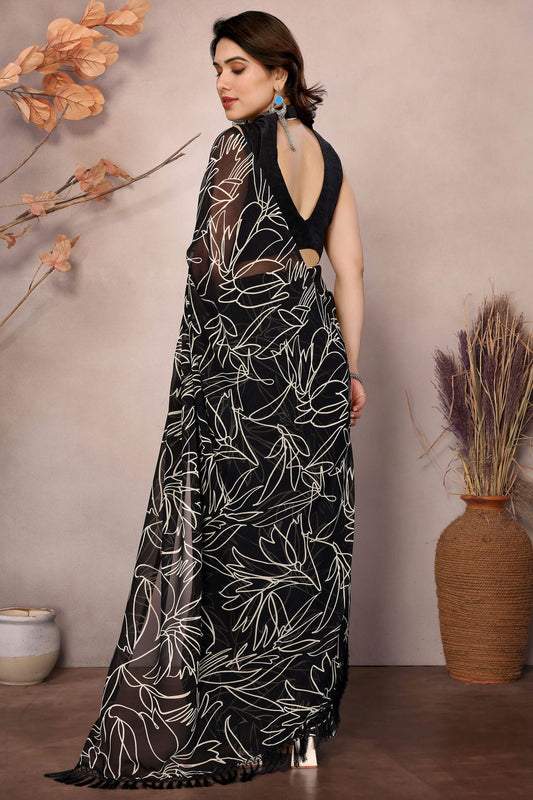 Black and White Colour Georgette Printed Saree VSSD1180123