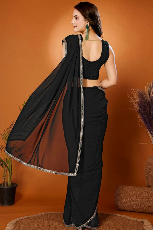 Black Colour Georgette Mirror Work Saree VSSD1180220