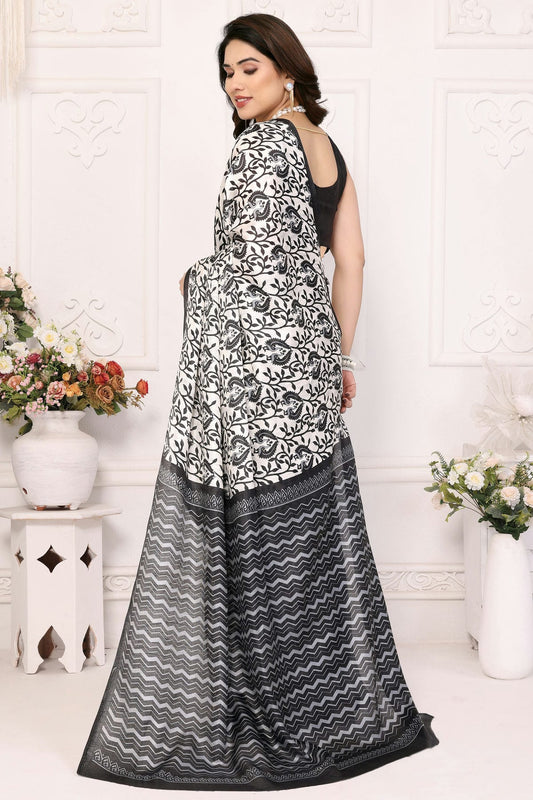 Black and White Colour Moss Printed Saree VSSD1180217