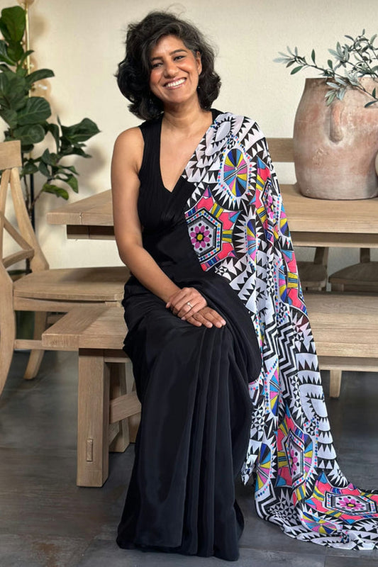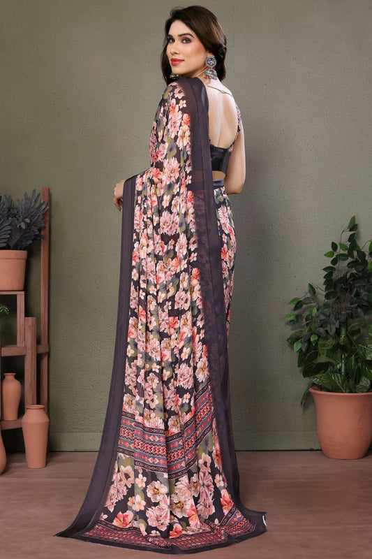 Black Colour Georgette Printed Saree VSSD1180043