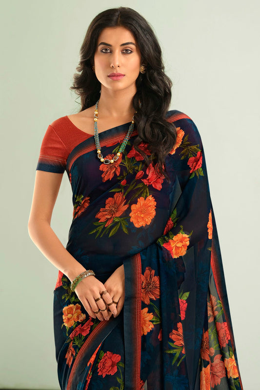 Navy Blue Colour Georgette Printed Saree VSSD1180066