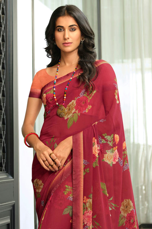Maroon Colour Georgette Printed Saree VSSD1180049