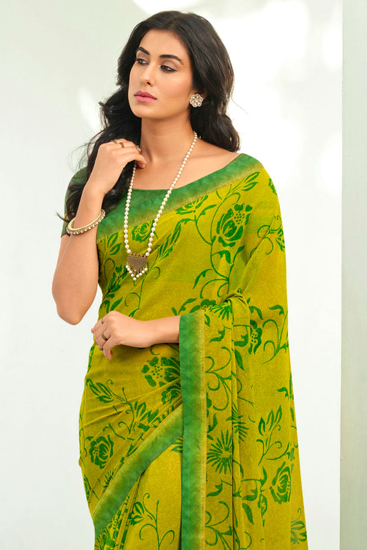 Mehendi Green Colour Georgette Printed Saree VSSD1180069