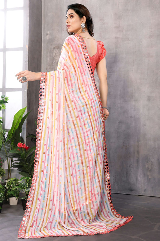 Pink Colour Georgette Mirror Work Saree VSSD1180133