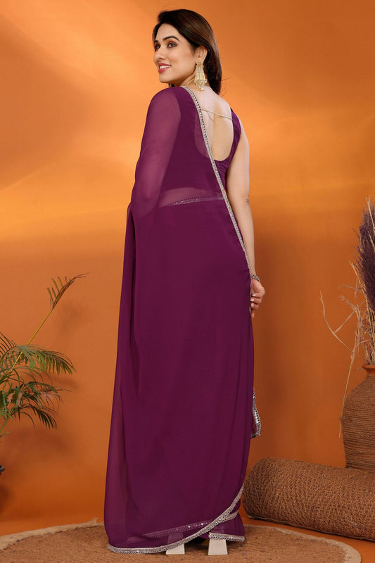 Purple Colour Georgette Mirror Work Saree VSSD1180134