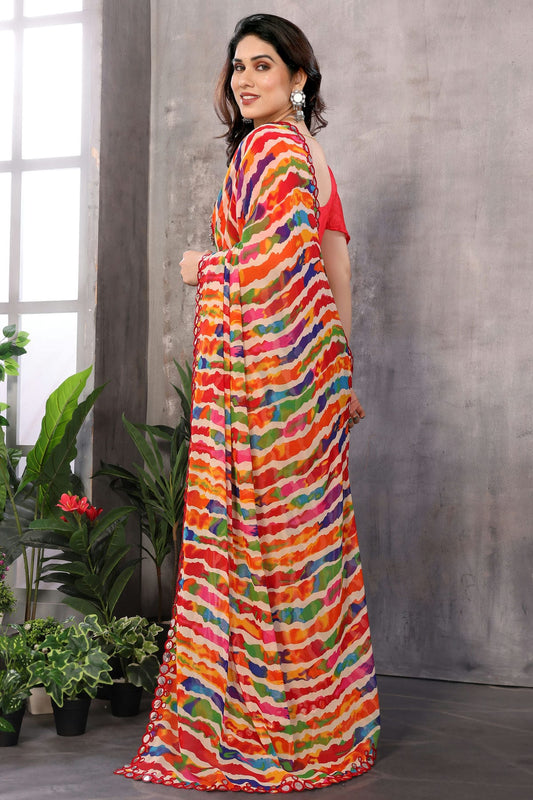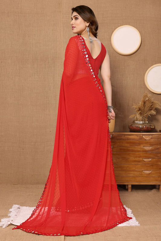 Red Colour Georgette Mirror Work Saree VSSD1180226