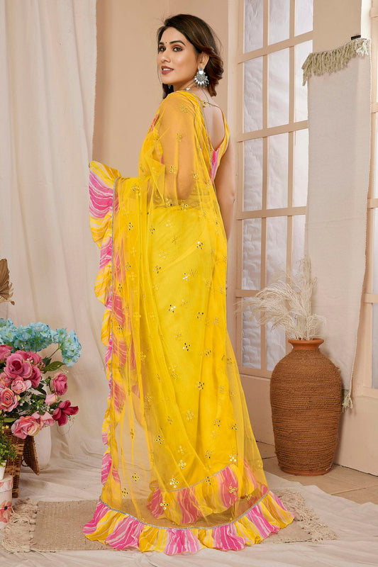 Yellow Colour Net Ruffle Saree VSSD1180128