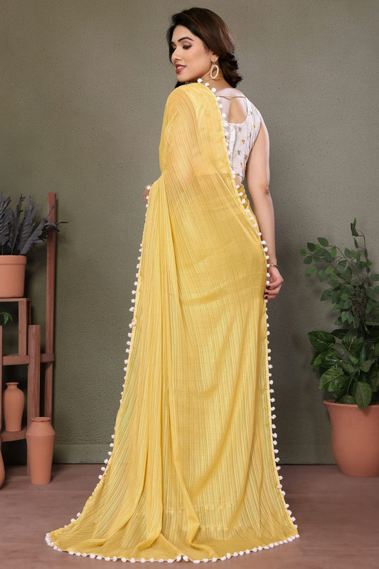 Yellow Colour Georgette Ruffle Saree VSSD1180136
