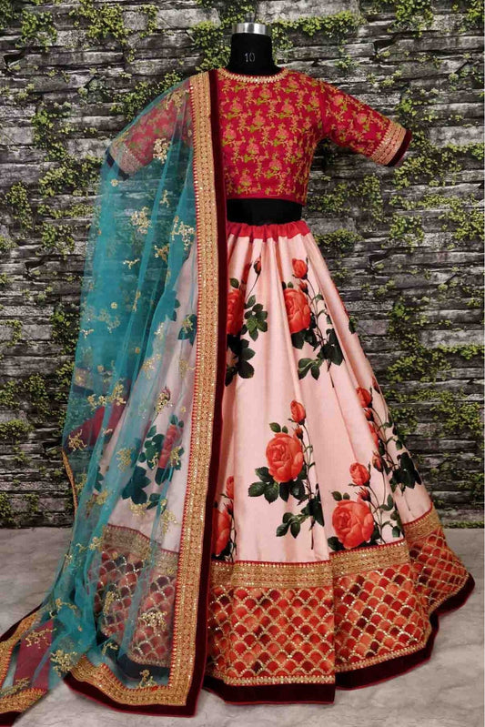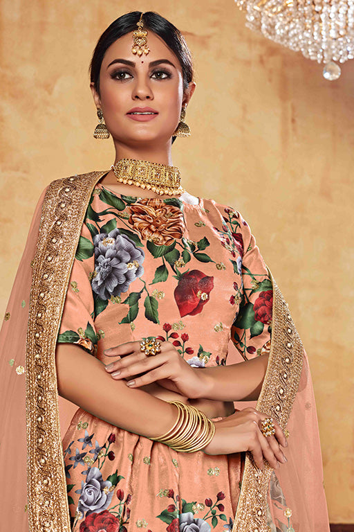 Peach Colour Art Silk and Banglori Silk Lehenga Choli VSLC1010002