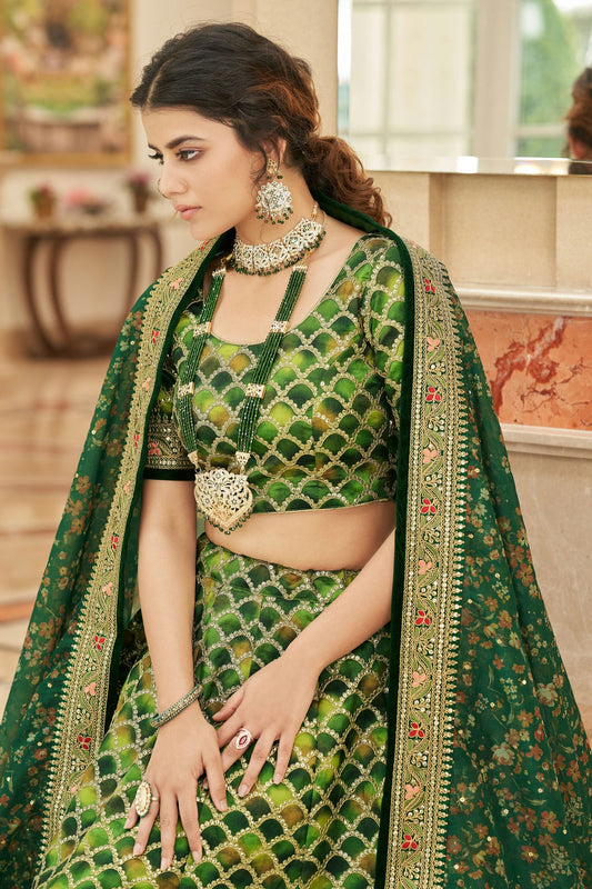 Green Colour Soft Net Lehenga Choli VSLC1030042