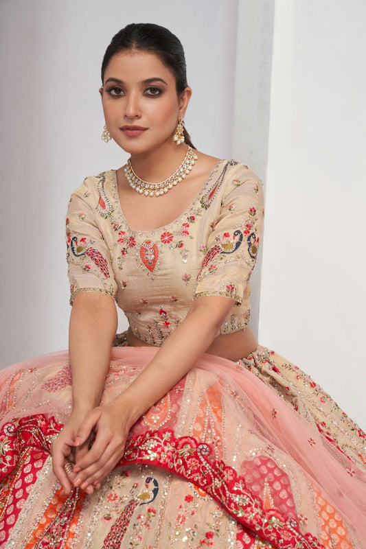 Peach Colour Soft Net Lehenga Choli VSLC1030055