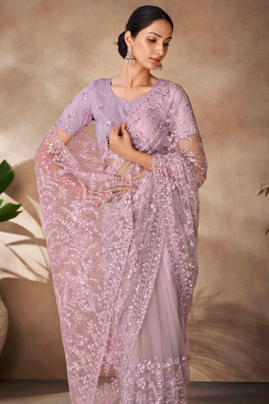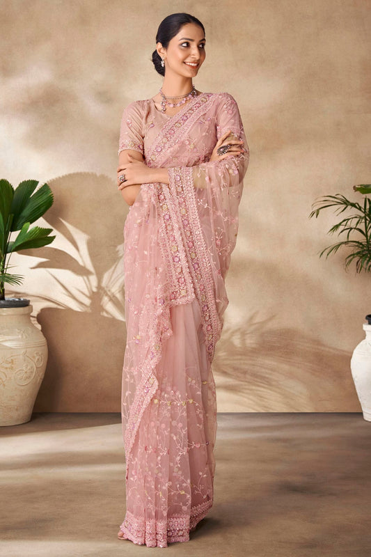 Baby Pink Colour Net Designer Saree VSSD1080868