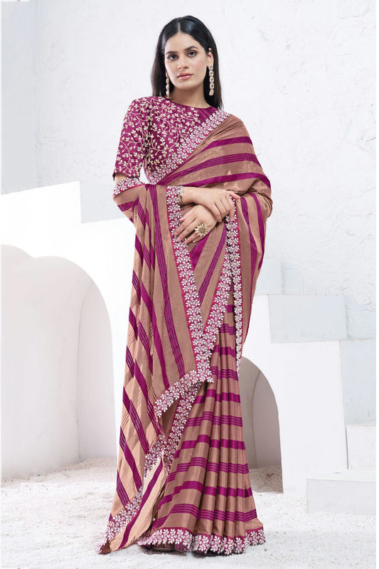 Brown and Purple Colour Georgette Designer Saree VSSD1112067