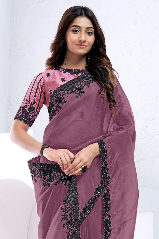 Dark Mauve Colour Crush Silk Designer Saree VSSD1112065