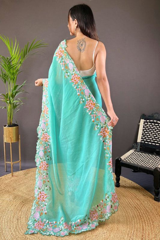 Sea Green Colour Georgette Designer Saree VSSD1112152