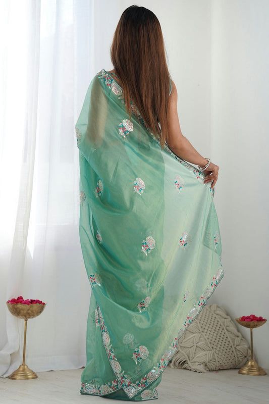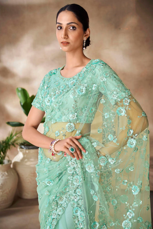 Sea Green Colour Twill Net Designer Saree VSSD1112113
