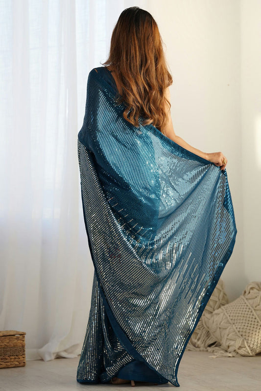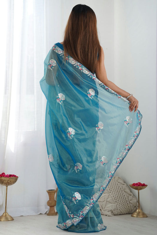 Teal Colour Twill Net Designer Saree VSSD1112111