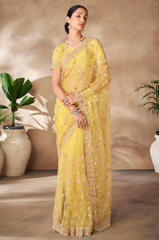 Pista Green Colour Twill Net Designer Saree VSSD1112112