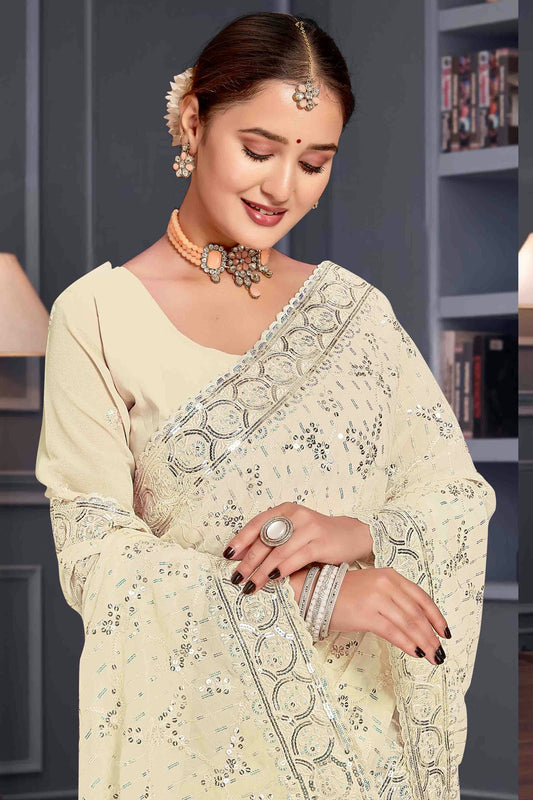 Off White Colour Georgette Embroidery Work Designer Saree VSSD1091252