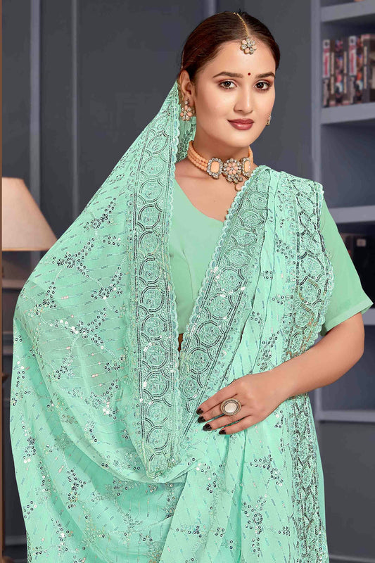 Sea Green Colour Georgette Embroidery Work Designer Saree VSSD1091249