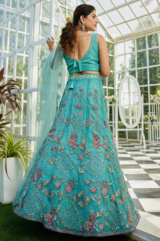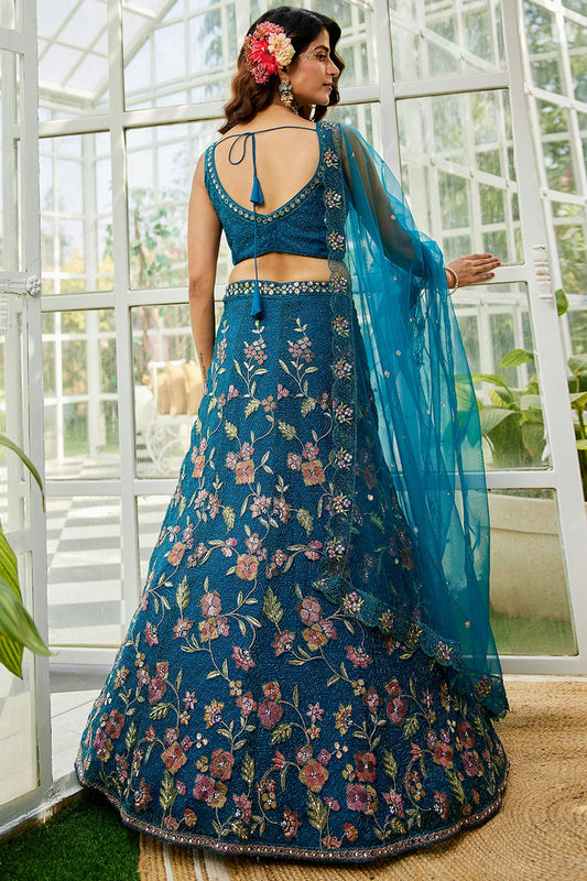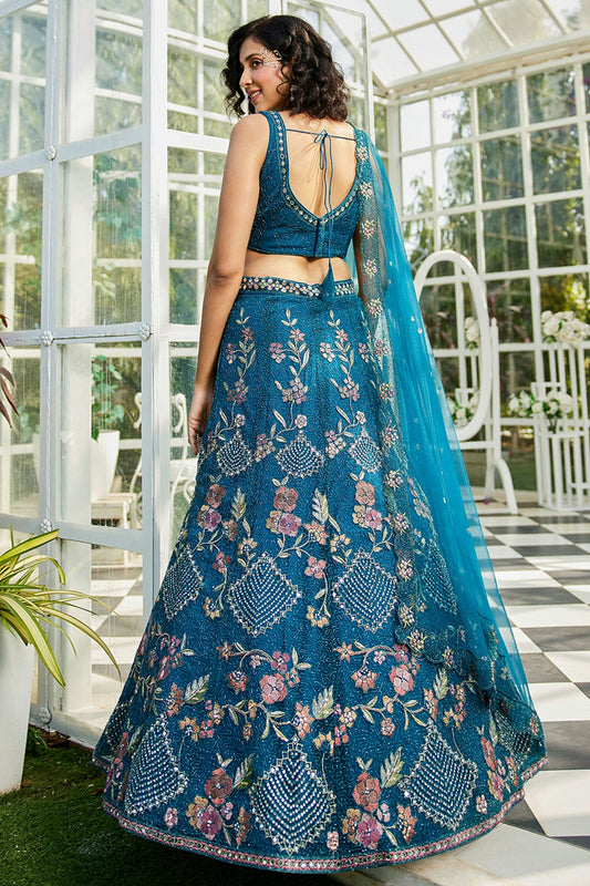 Teal Colour Net Designer Lehenga Choli VSLC1240001