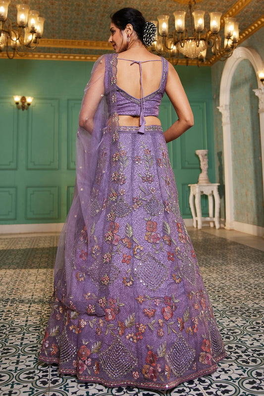 Lavender Colour Semi Stitched Net Lehenga Choli VSLC1112531