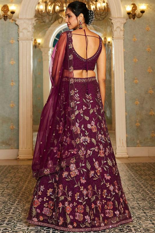 Wine Colour Semi Stitched Butterfly Net Lehenga Choli VSLC1112526