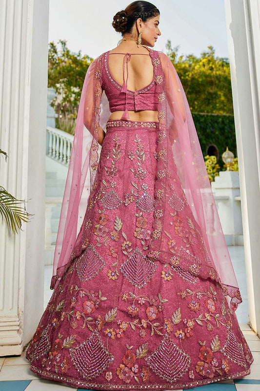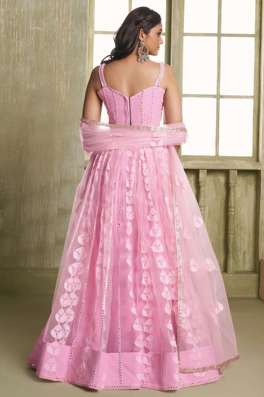 Pink Colour Semi Stitched Net Lehenga Choli VSLC1112534