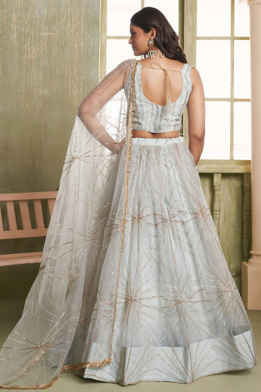 Light Grey Colour Semi Stitched Butterfly Net Lehenga Choli VSLC1112527