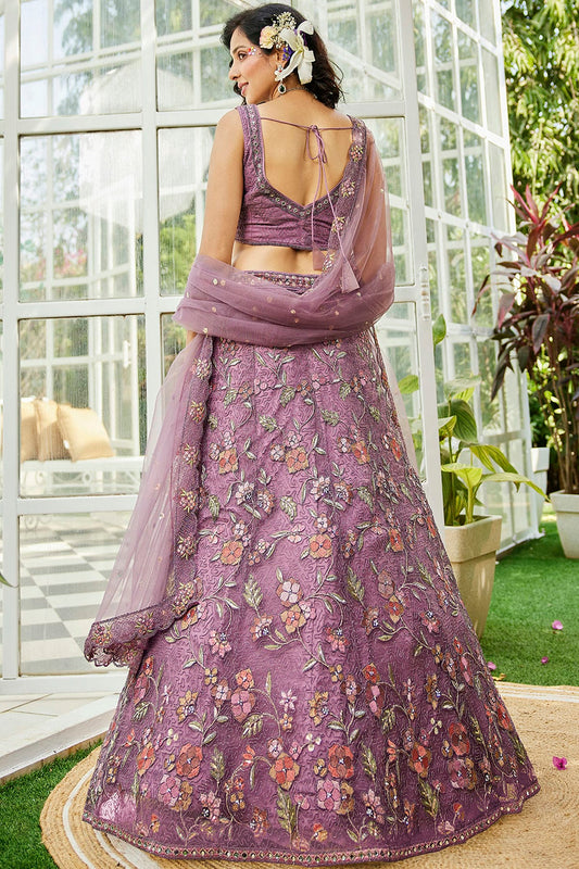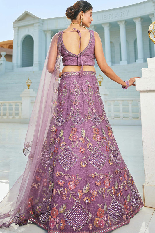 Purple Colour Net Designer Lehenga Choli VSLC1240002