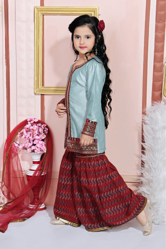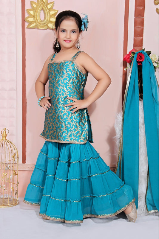 Teal and Blue Colour Jacquard Embroidery Sharara Suit VSGW1070034