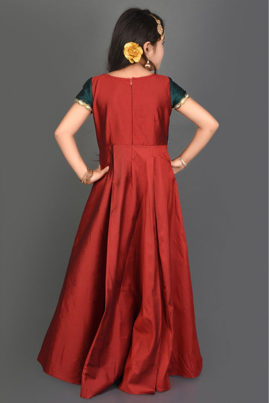 Maroon Colour Taffeta Lace Work Kurti VSGW1070038