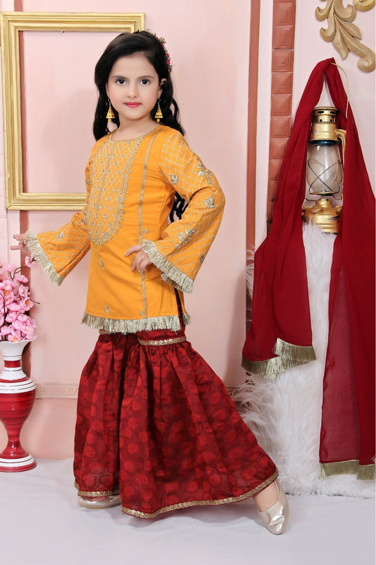 Mustard Colour Cotton Silk Embroidery Sharara Suit VSGW1070026