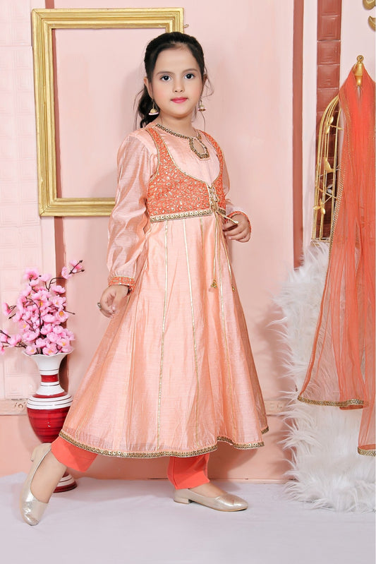 Peach Colour Chanderi Silk Embroidery Anarkali Suit VSGW1070033