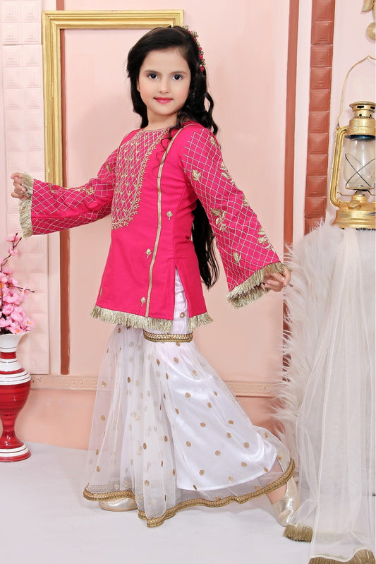 Pink Colour Cotton Silk Embroidery Sharara Suit VSGW1070028