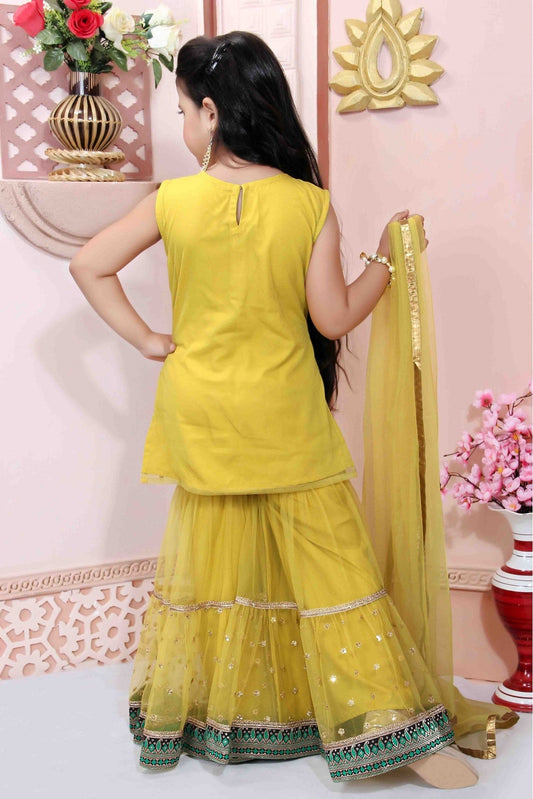 Yellow Colour Net Embroidery Sharara Suit VSGW1070031