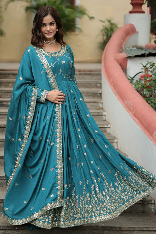 Light Blue Colour Chinon Stitched Gown VSGW1112318